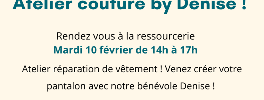 Atelier réparation de vêtement ! Venez créer votre pantalon avec notre bénévole Denise !