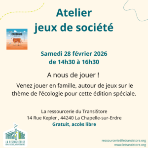 Nous vous attendons pour une après-midi jeux de société sur le thème de l’écologie à la Ressourcerie du TransiStore !