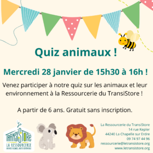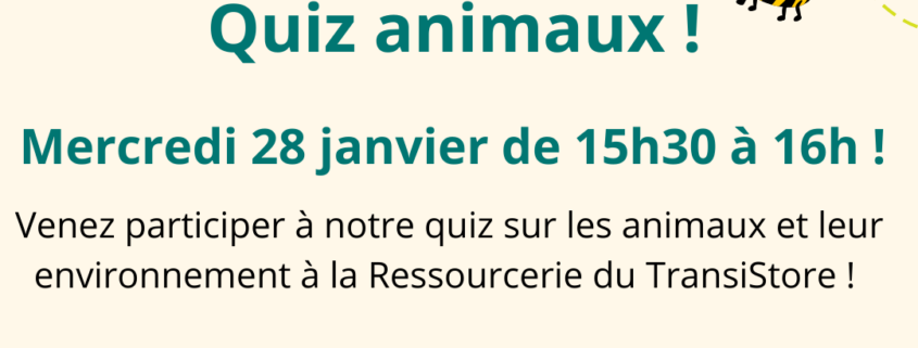 Venez participer à notre quiz sur les animaux et leur environnement à la Ressourcerie du TransiStore !